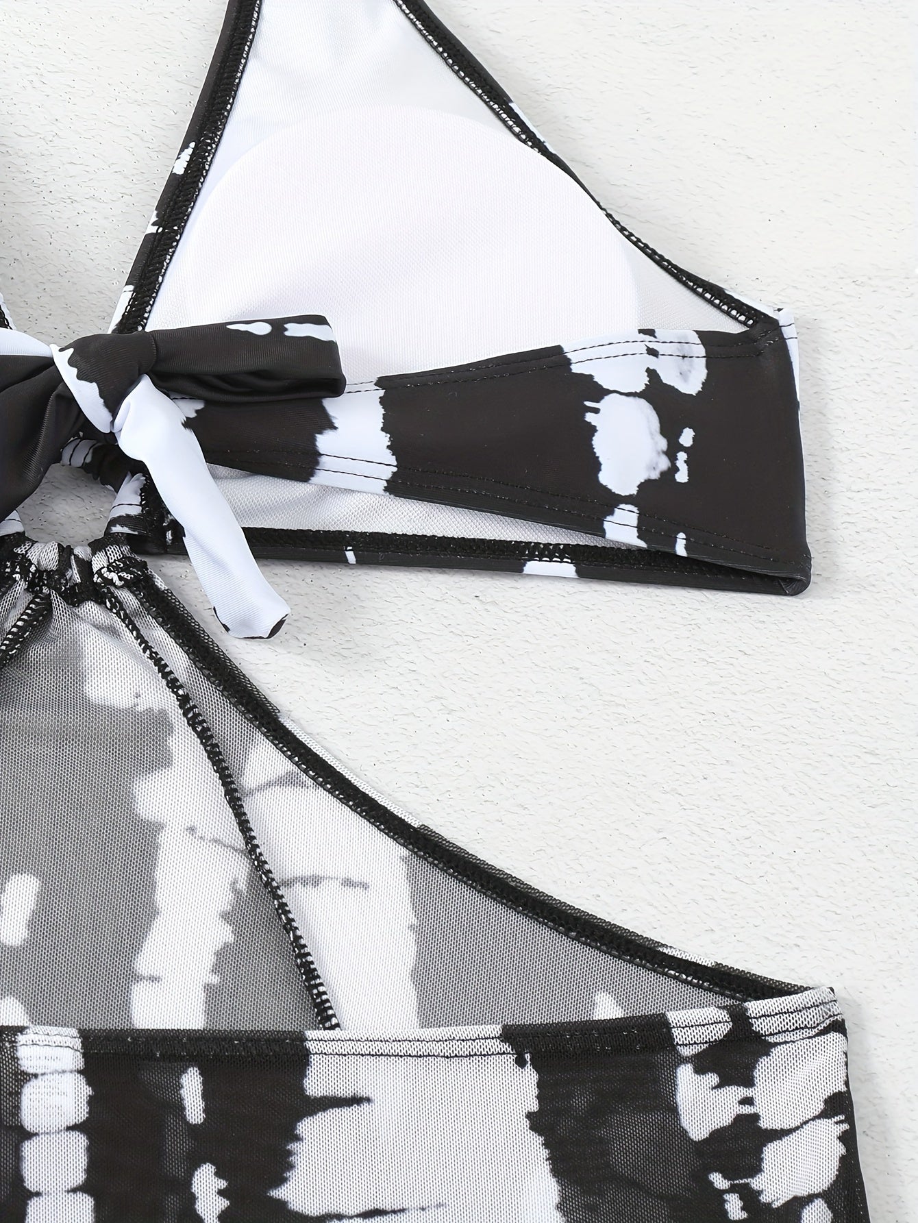 2 Piece Set Striped Print Halter Ring Swimsuits, High Stretch Split Mesh Elegant Beachwear for Women