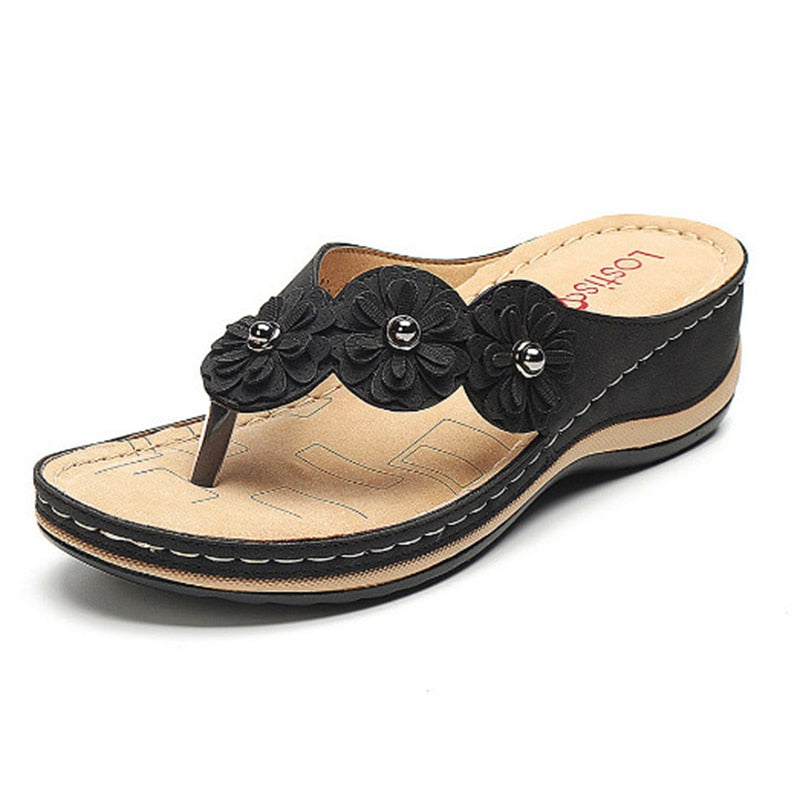 summer women sandals Flower Wedge ladies open toe casual shoes Platform flip flops wedge slides beach shoes woman sandalia c904